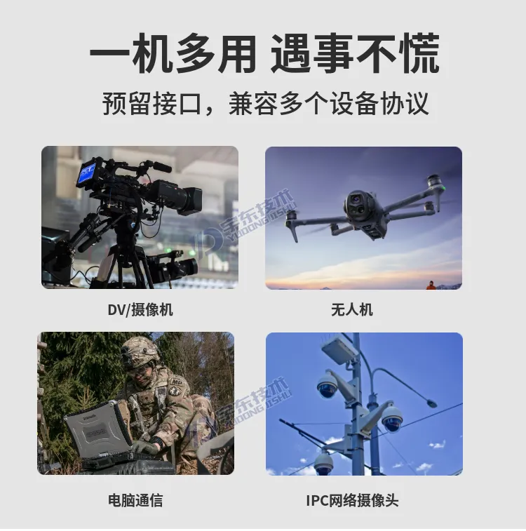 宇東技術雷神1號PLUS背負式高清無線圖傳電臺,是公司針對應急救援指揮、公安、反恐作戰、消防救援、邊防執勤、海警海關巡檢、部隊拉練演習、森林消防等,在突發重大事件,斷網斷電,通信中斷的情況下,現場工作人員通過宇東雷神1號PLUS單兵圖傳電臺,把現場采集的數據實時無線傳輸到指揮車/臨時指揮部大屏幕,讓指揮部領導對現場情況一目了然,節省了到達現場的時間,可快速做緊急指揮調度,最大限度的減少突發事件帶來的各種損失。