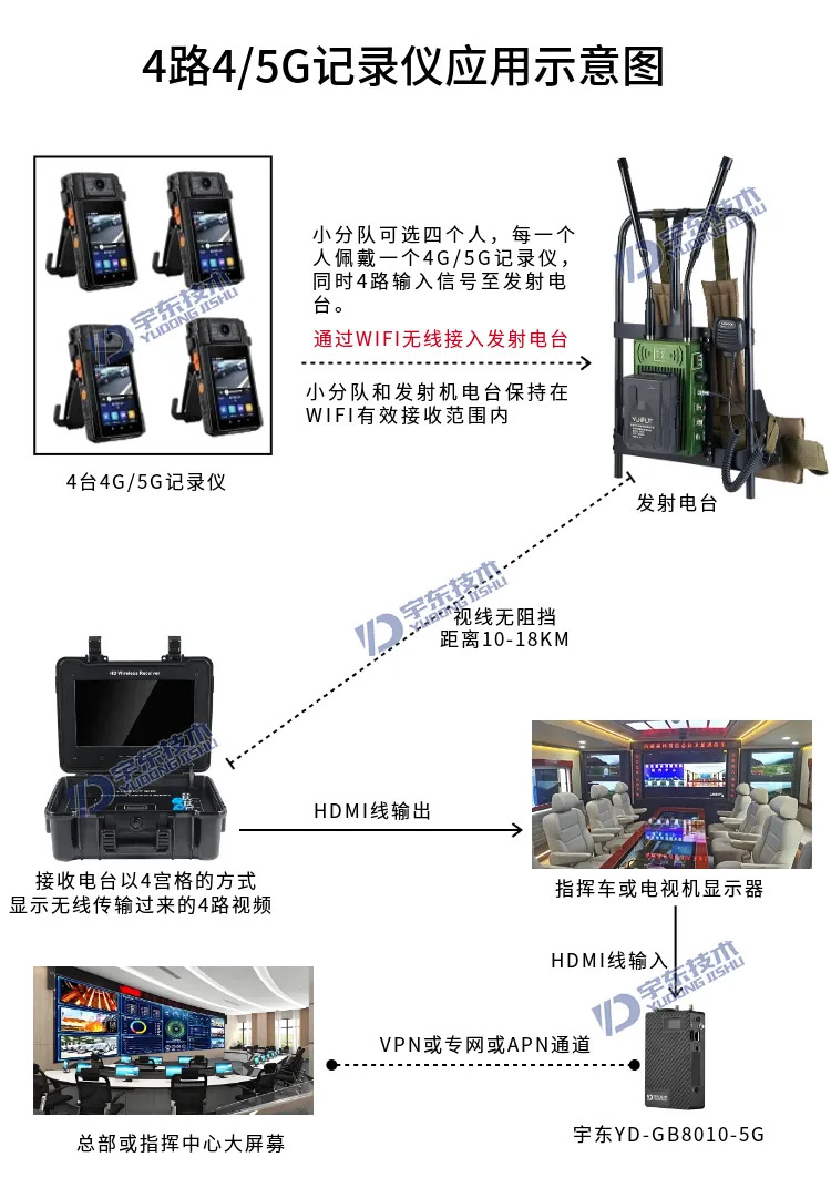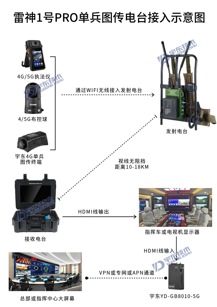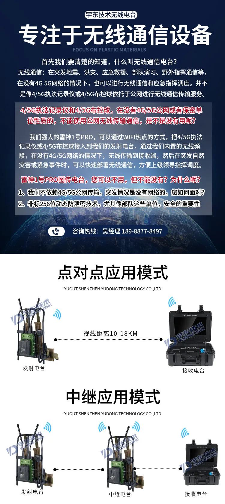 宇東技術(shù)雷神1號PRO背負(fù)式高清單兵無線圖傳電臺,是公司針對應(yīng)急救援指揮、部隊拉練演習(xí)、公安、反恐作戰(zhàn)、消防救援、邊防執(zhí)勤、海警海關(guān)巡檢、森林消防等,在突發(fā)重大事件,斷網(wǎng)斷電,通信中斷的情況下,現(xiàn)場工作人員通過宇東雷神1號PRO單兵無線圖傳電臺,可以和指揮部雙向語音通話對講,把現(xiàn)場采集的數(shù)據(jù)實時無線傳輸?shù)街笓]車/臨時指揮部大屏幕,讓指揮部領(lǐng)導(dǎo)對現(xiàn)場情況一目了然,節(jié)省了到達(dá)現(xiàn)場的時間,可快速做緊急指揮調(diào)度,最大限度的減少突發(fā)事件帶來的各種損失。